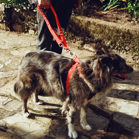 - Traílla corta: Ideal para mantener a tu perro cerca y controlar en espacios reducidos o zonas concurridas sin enredarse con el lazo.