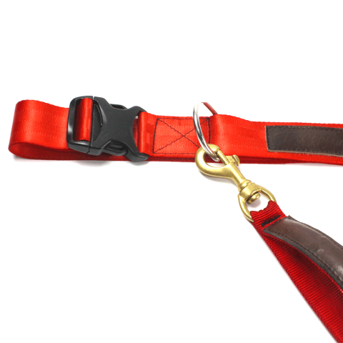 - Traílla distech: Fabricado en reata de nylon elástica de alta resistencia y dos mosquetones de bronce , doble agarradera acolchada con acabados en cuero.
